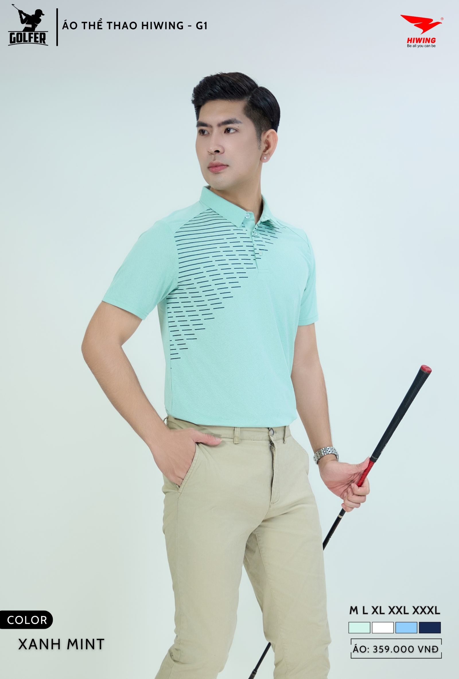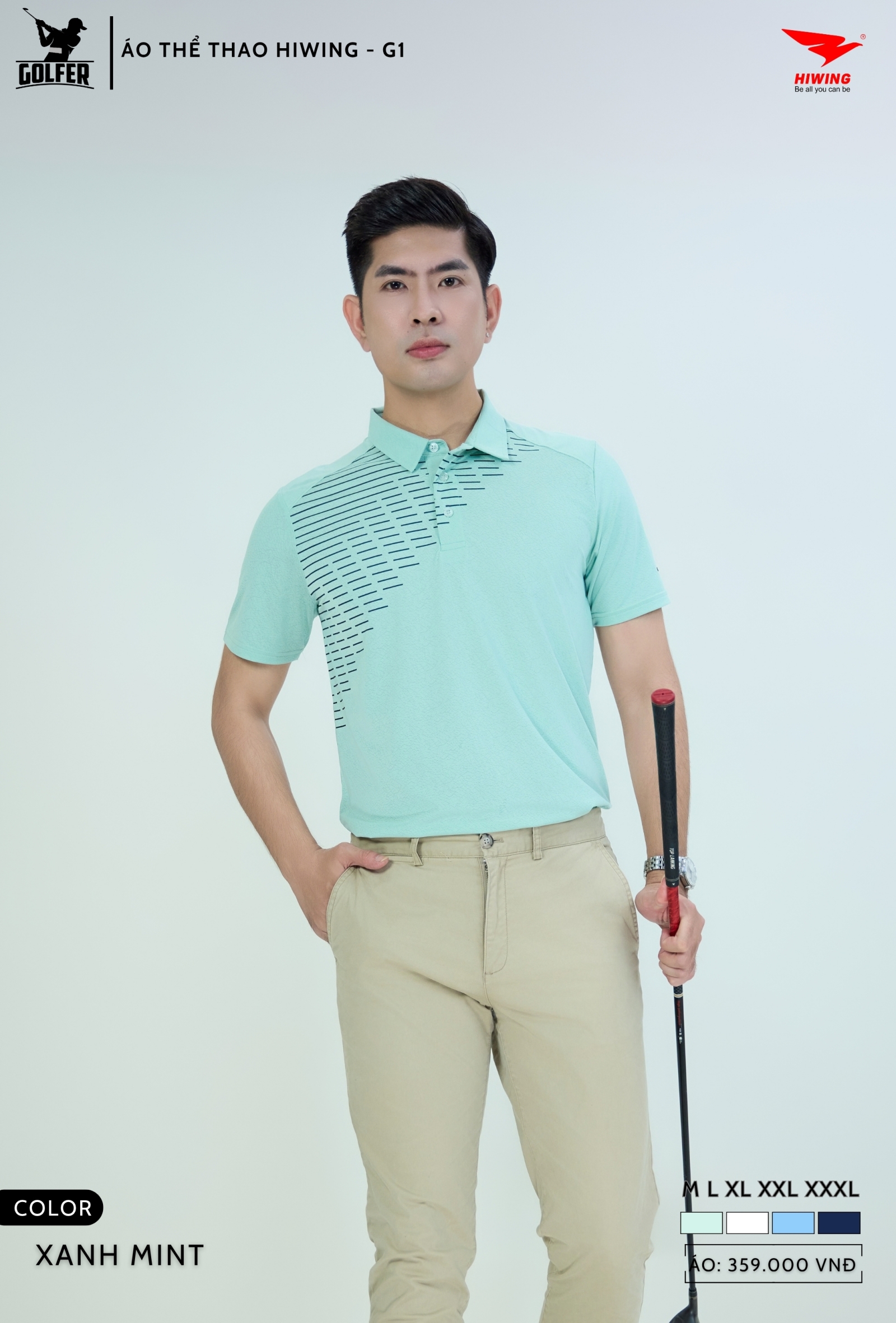 Áo Hiwing G1 được thiết kế theo phom Golf Fit, dáng suông vừa phải giúp tôn dáng và tạo cảm giác thoải mái khi swing, di chuyển hoặc luyện tập.
